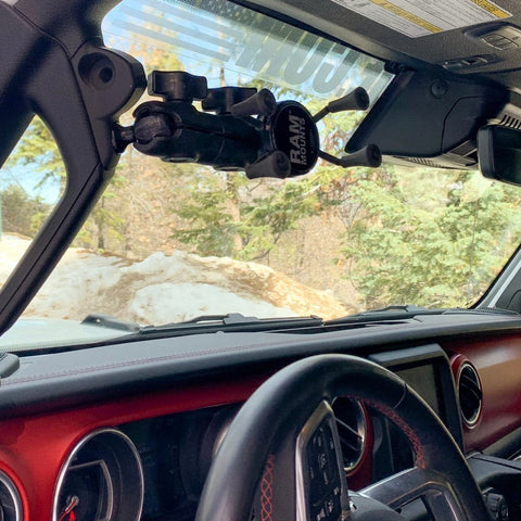 RAM Mount X-Grip has a clean and clever four leg design that sports great holding power without hiding your phone. This will the most useful accessory in your Jeep. Double socket arm has a socket at both ends that accommodates B Size 1" balls. RAM's socket technology allows for almost infinite adjustment to achieve the perfect viewing angle.
