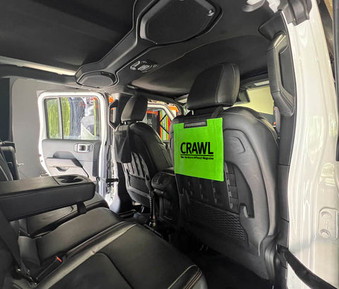 The CRAWL MAGAZINE SeatBackSac is the perfect spot for backseat passengers and kids to store all of their travel essentials and loose items. The best part is you can stuff them to the brim and still see where everything is inside.