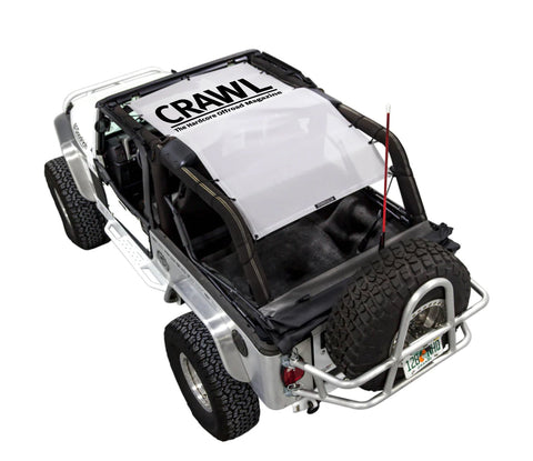 The LJ Crawl Magazine is the top choice for Jeep owners world-wide who are looking for a one-piece top to cover front and back seat riders. This high quality, NO header needed mesh top is custom and can be configured many different ways (e.g., Kini and Safari) and is designed to fit all of the listed Jeep Wrangler LJ models: 2003-2006 LJ Unlimited.